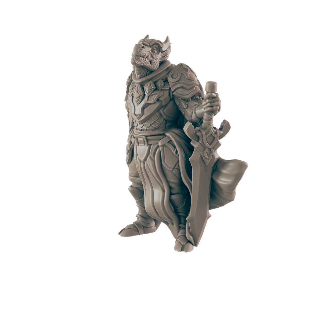 Set Includes: 1 armored Dragonborn paladin with sword and billowing cloak