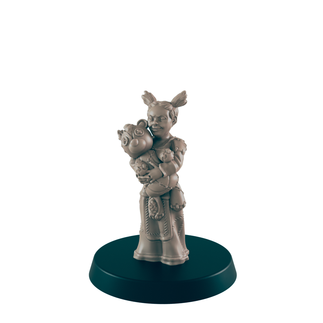 Set Includes: 1 eerie young girl clutching a doll or charm