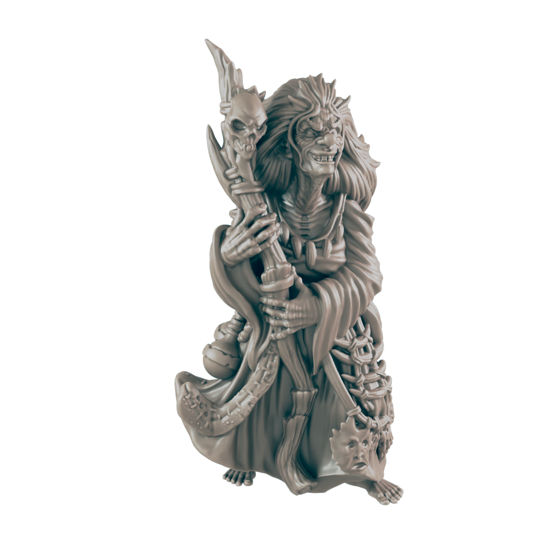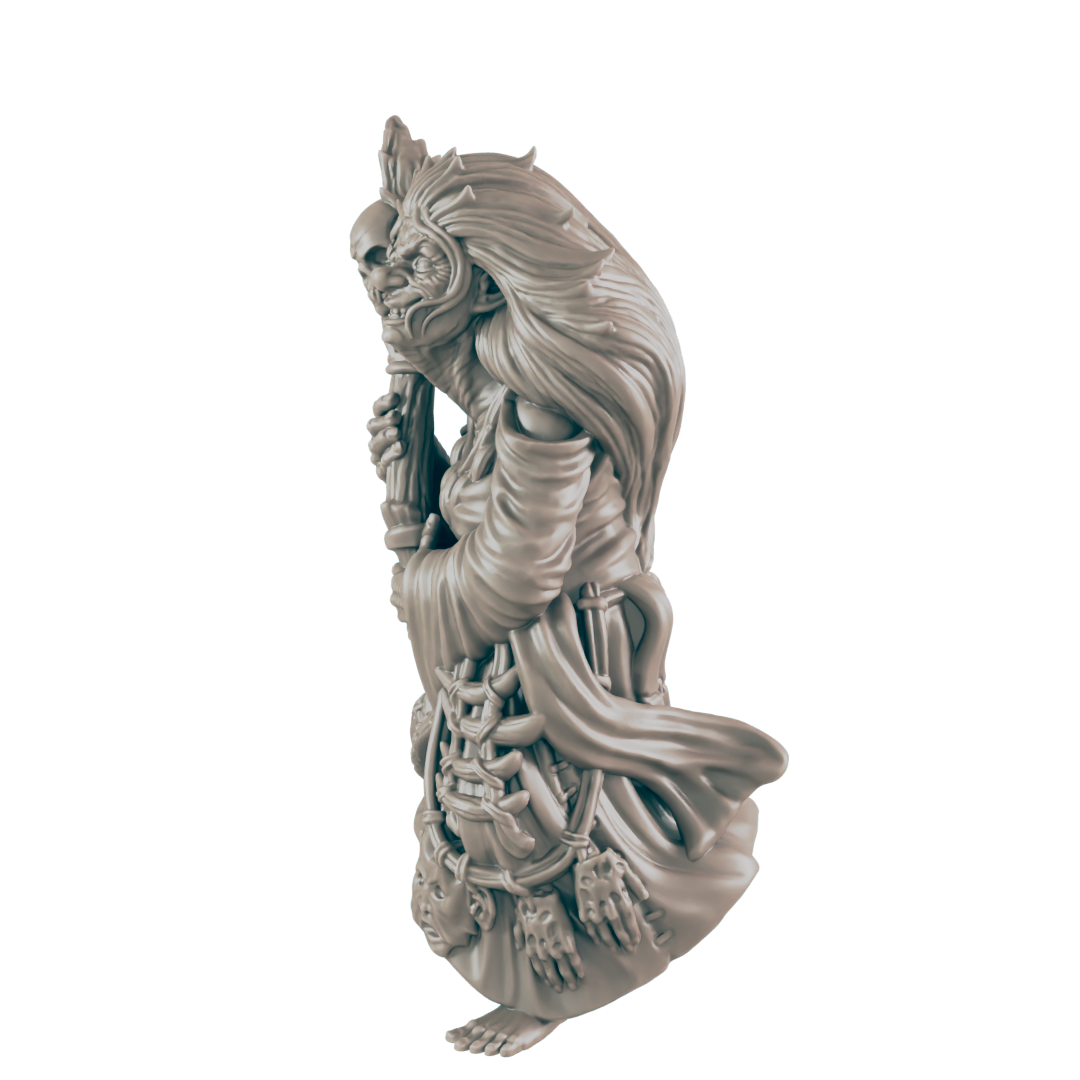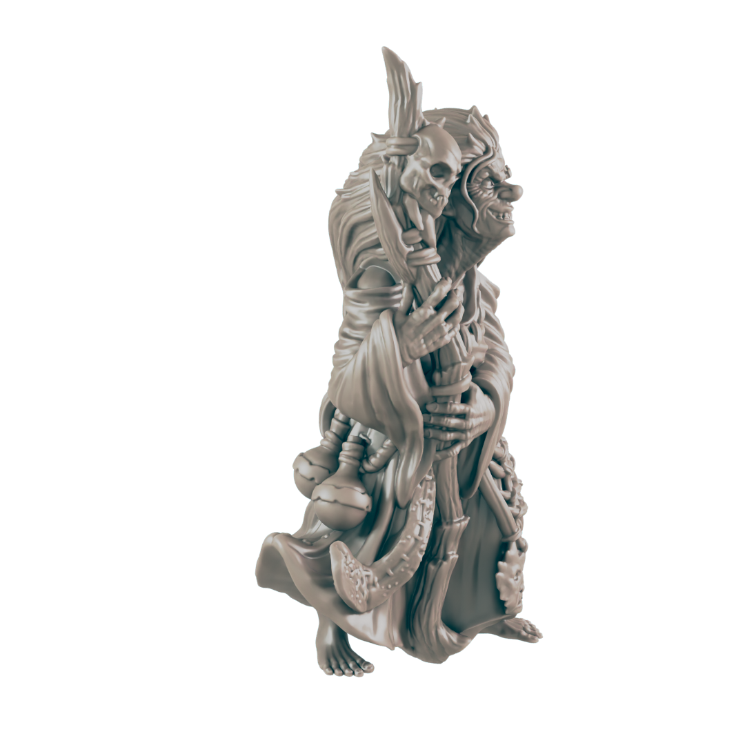 This resin 3D printed miniature set includes two uniquely sculpted hags, each radiating menace and mystery. Their poses drip with cruel character—one hunched over as if whispering secrets, the other outstretched as though beckoning prey closer. Perfect as the centerpiece of a coven, wandering witches in the wilds, or manipulators behind a village’s woes.