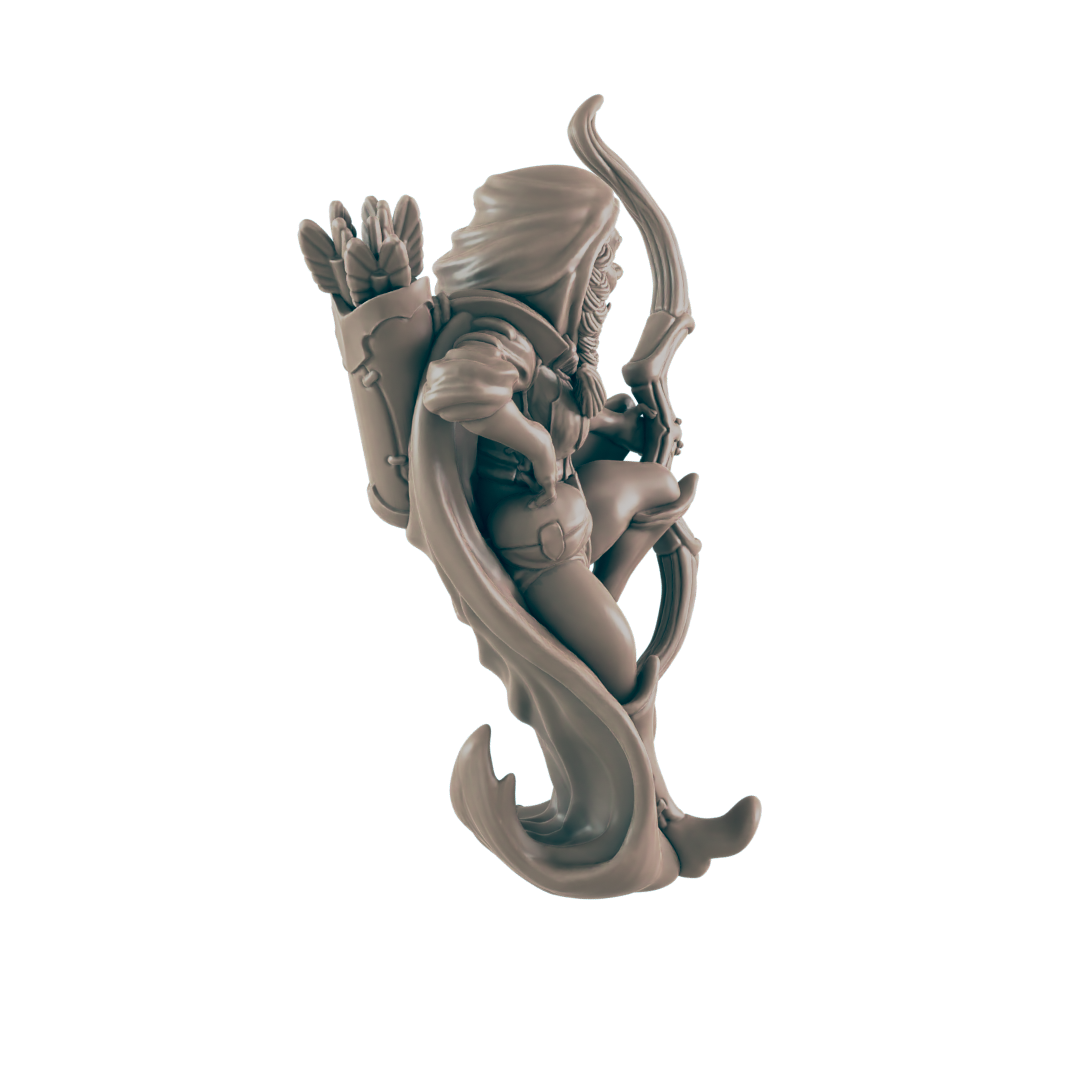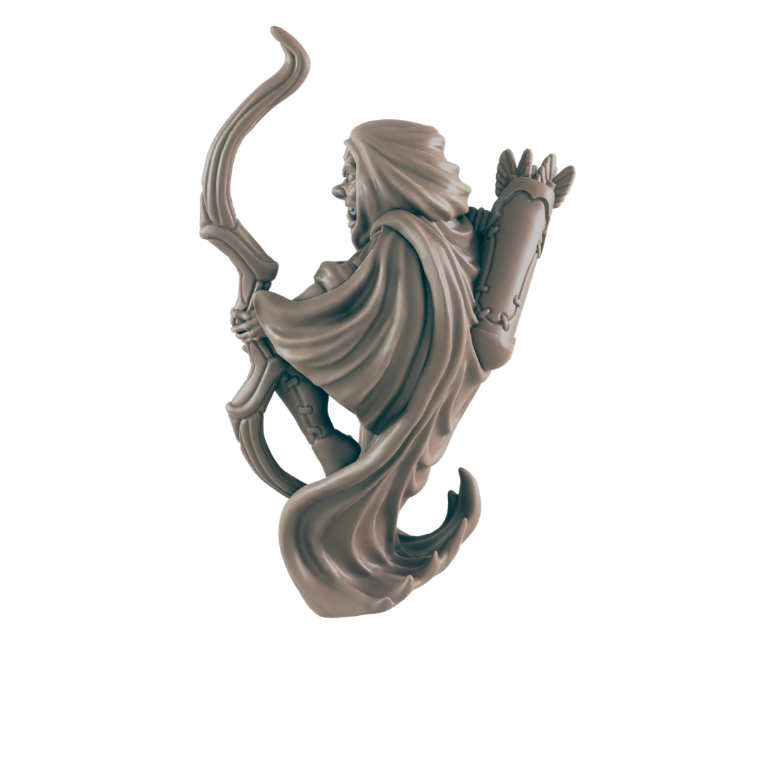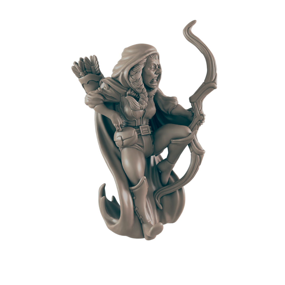 Set Includes: 1 Half-Orc ranger with longbow and cloak furled around her.