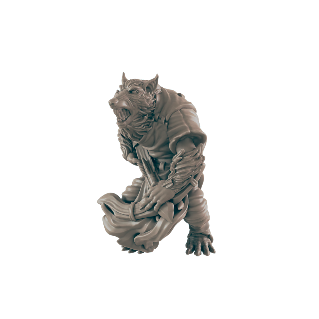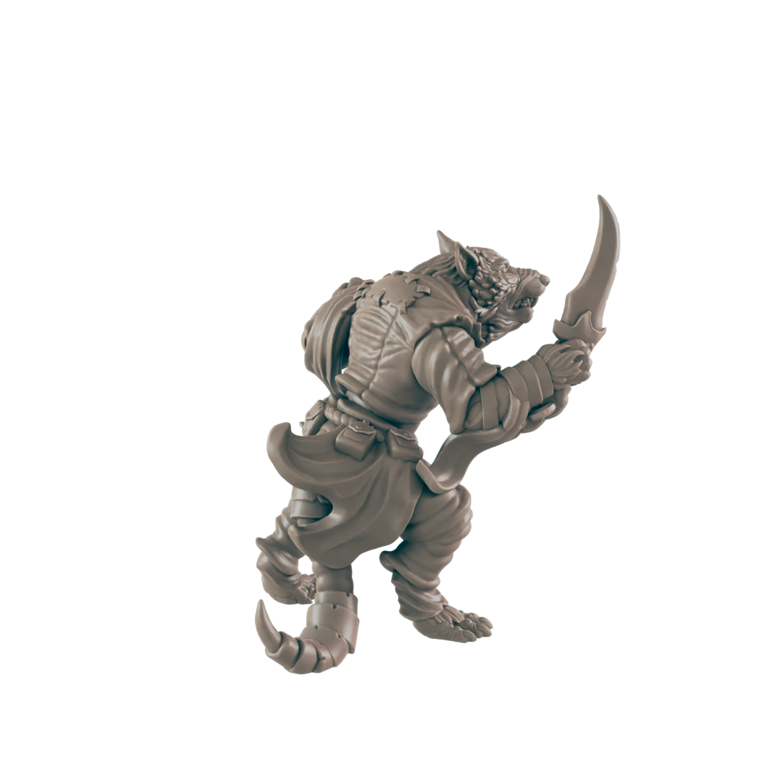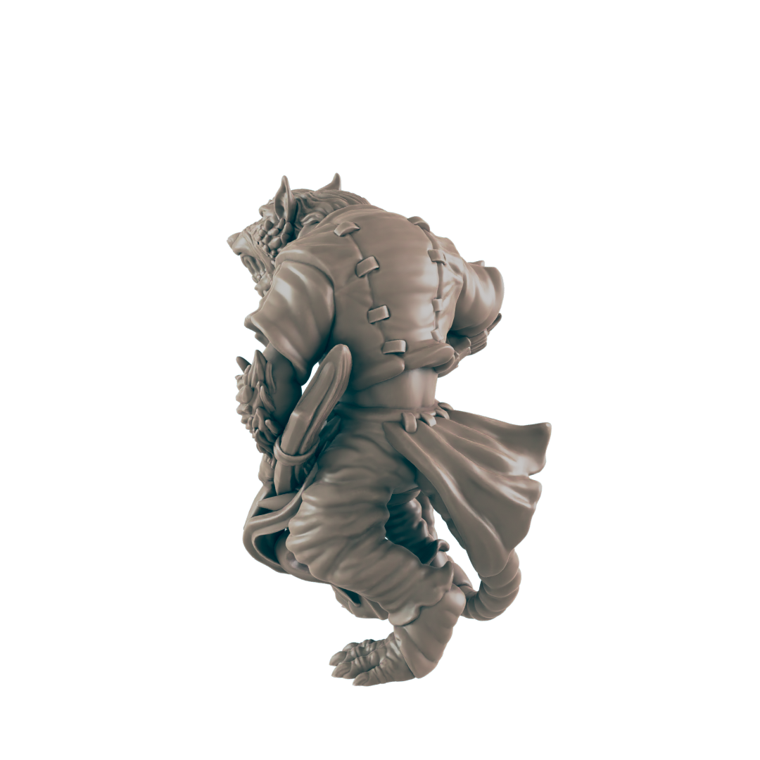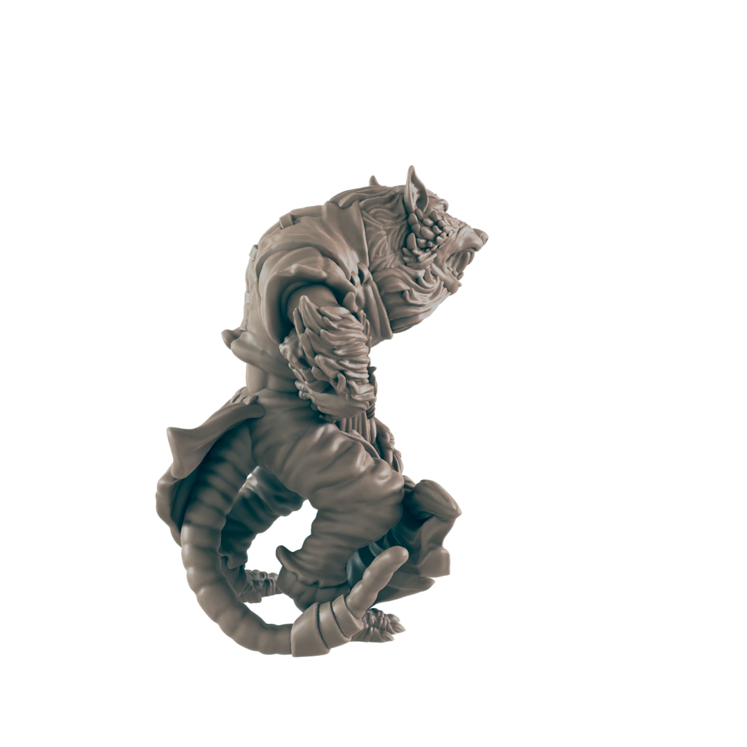 This resin 3D printed miniature set brings three of these twisted horrors to your tabletop, each posed with cruel intent: ragged weapons in clawed hands, hunched stances ready to lunge, and features that blur the line between vermin and man. Perfect as ambushers in city sewers, minions of a greater beast, or the plague-ridden cultists of some diseased god.